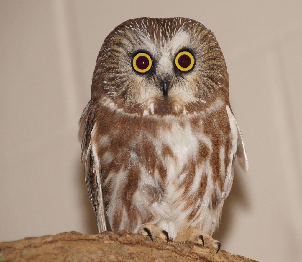 Northern Saw-whet owls are the smallest owls in Minnesota. They weigh in at only 65-100 grams (females are larger than males), live in woodland areas in northern and central Minnesota (some now nest in the Twin Cities area) and are cavity nesters. Their diet consists primarily of mice, the availability of which often determines the extent of their winter movements.